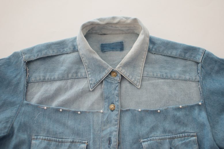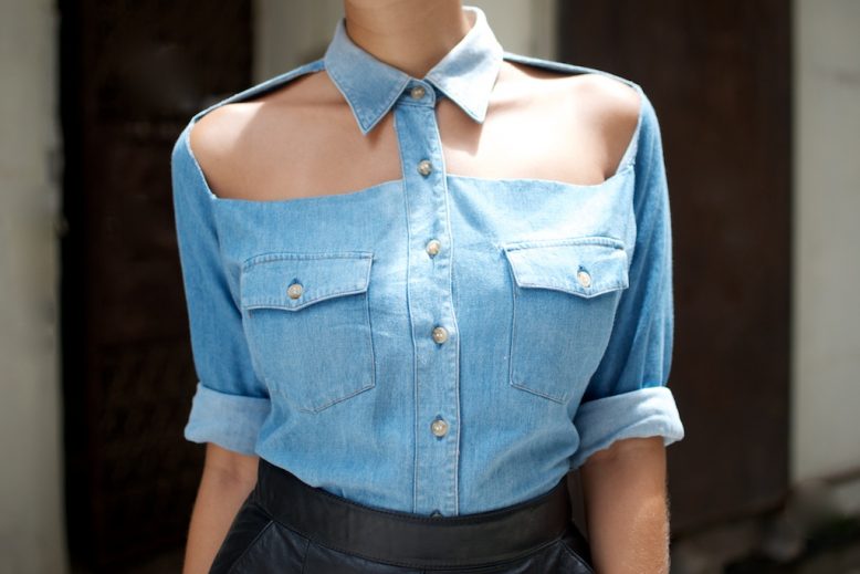 Greetings from NY everyone! Before I head out to face the day I thought I would show you a project I did recently for the relaunch of the Vogue Australia website – a super simple cut out denim shirt. You’d be crazy not to have a go yourself!
