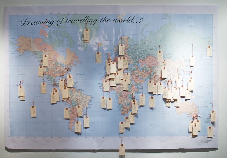 The holiday season is usually booked up with so many events and parties that they go past in a boozy blur. But what makes a truly memorable event? Food and drink is an obvious one, but I think it’s more than that. For me it’s about activities, parties that have unique and interesting things to do are always the ones you remember. Remember slip n slide parties as a ten year old? Best. Parties. Ever. It seems our parents managed to fill birthdays to the brim with fun things to do, and while this might have been a product of their mortal fear of having 25 bored children on their hands (if you google kids party games you will see how desperate people are to tire their children out), it usually meant fun levels off the Richter scale. So there’s no reason why this year, your holiday party shouldn’t have a few activities for people to get involved in. I was recently involved in my friend MISCHA‘s anniversary party and in addition to photo booth complete with insane costumes we created this gorgeous Travel Wishing Map, or wanderlust map, where people were asked to put on a tag where they dreamed of travelling to in 2013 and pin it to the board. What can I say? It made us feel as though we’d achieved something (other than just inhaling 6 glasses of wine), and got us all thinking about our plans for next year. To make your own version, all you need is a large map, mounted onto some cork or foam sheeting, as well as some tags with pins to attach them to the map. Simple!