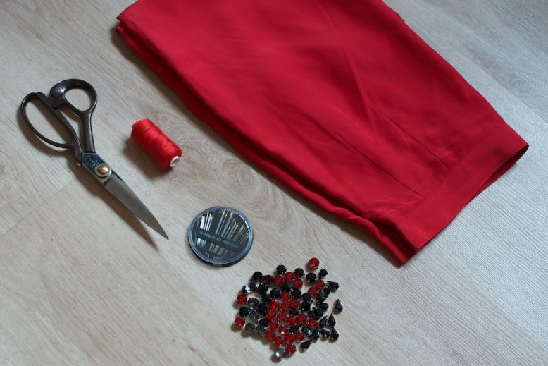 Although the proverbial ‘diamonds are a girl’s best friend’ often rings true, rhinestones of all shapes and sizes come in a close second. And what could be better than a rhinestone adored piece of clothing that’s not only sartorially appropriate for your Valentines Day festivities (whether it be with a man or your gal pals) but also ticks the ‘one must wear red on Chinese New Year’ box (if that’s your bag obviously). Perfect for paying homage to the incoming year of the snake, as opposed to any other type of snake (cue winky face emoji). The best part about this project? It’s another sneaky before & after piece that won’t leave your bank account gasping for air. Hurrah!