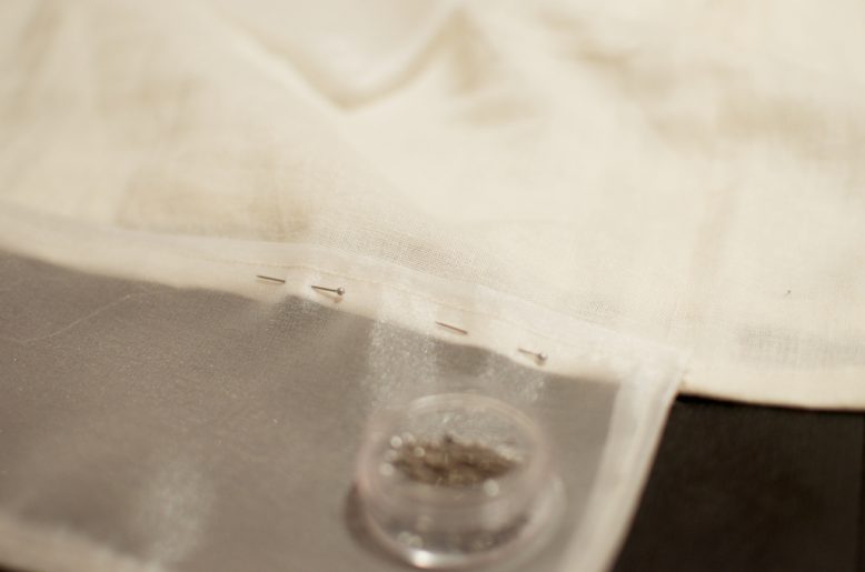 3. Turn the hem of the sheer fabric twice and then iron and sew down. If you have two separate pieces, join them together.