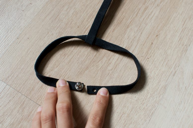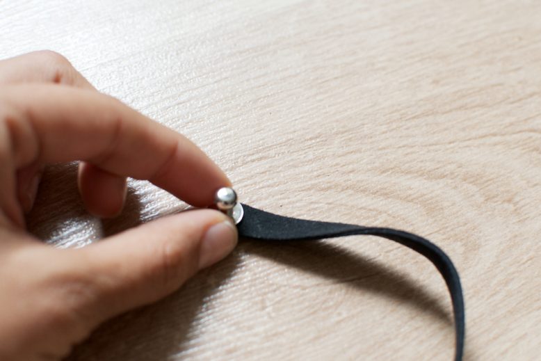 11. Finally, make a hole in the other side so you can attach the strap by pushing it on and off the stud button.