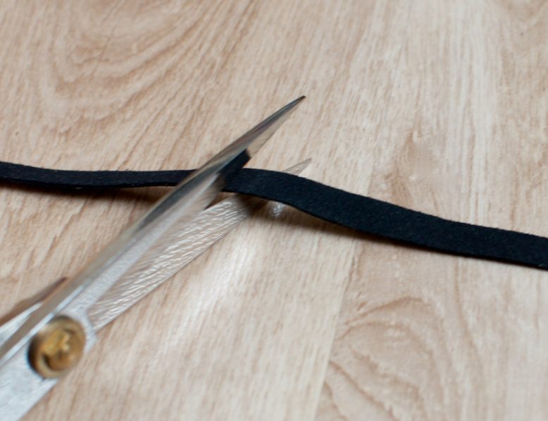 9. Measuring around your leg to work out where the stud button should go at the back, make a hole with the hole punch.