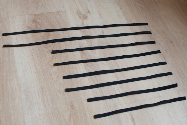 1. Start by deciding how many strips you want to go around your legs, I went with three to keep it simple and almost geometric looking. Then measure your calf in the places you want to put the strips.