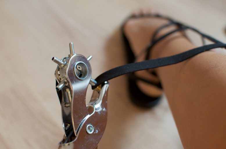 I’m pretty sure I wasn’t the only one immediately smitten with the Alexander Wang gladiator heels (and indeed all the gladiator styles that are around this season) when they hit the runway late last year, I knew straight away that I would trying my hand at DIYing something similar come summer. My first thought was to channel the high heeled gladiator version, but decided to go with a flat version for wearability – perfect festival and beach wear, especially worn with my DIY Transparent Satchel!