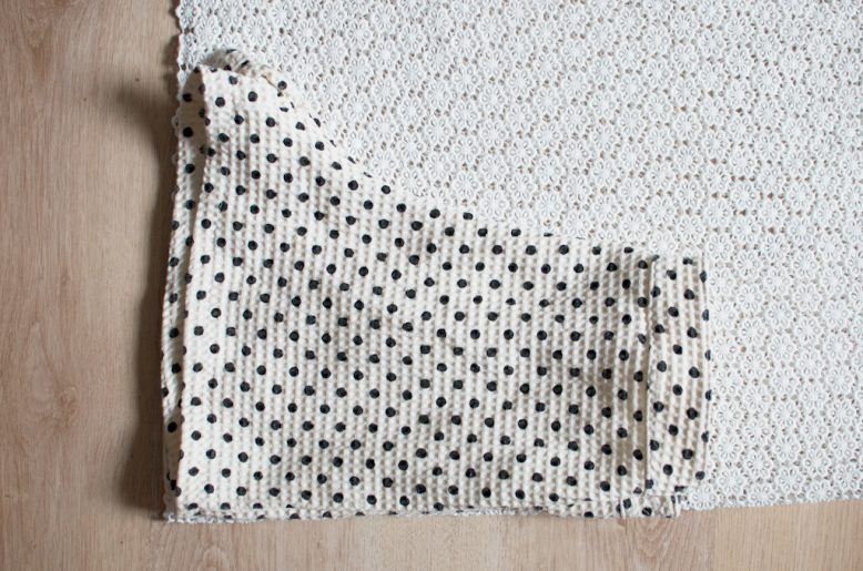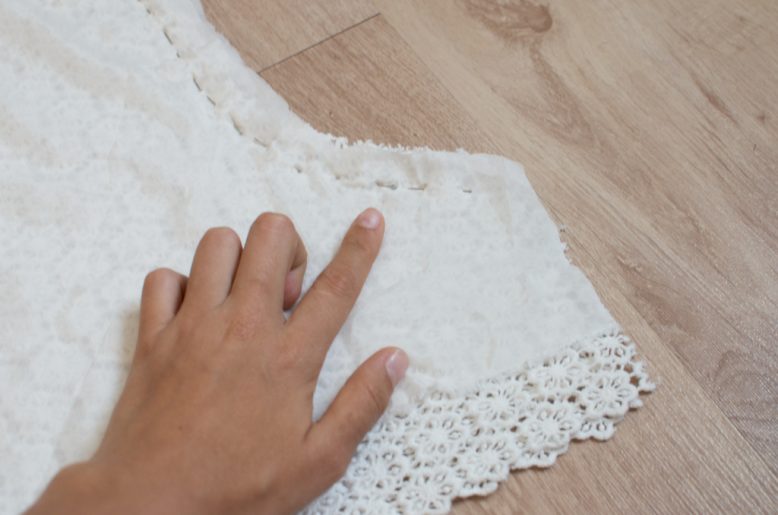 6. Lay two pieces of lining fabric over the top to fully cover the lace and use the lace as a guide for cutting out the same shape for the lining.