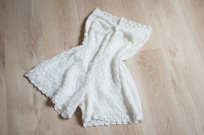 What could be more appropriate for your summertime wardrobe than a lace romper? I’ve had my eye on this style since last summer, but instead of buying I decided to try my hand at making my own. In many ways this project evolved as I worked on it, I wasn’t exactly sure what it would look like before I started (I was thinking it might be halter but went with strapless in the end) but it turned out to be exactly what I needed for hanging by the beach or a bit of high summer boat hopping.