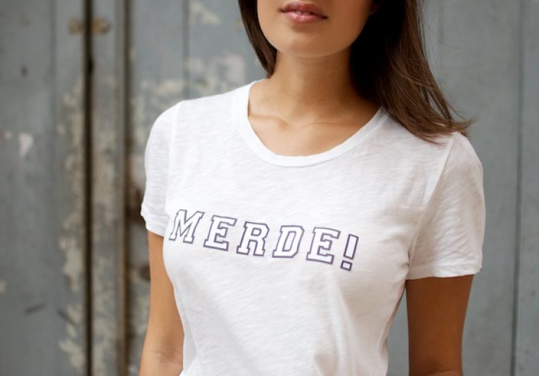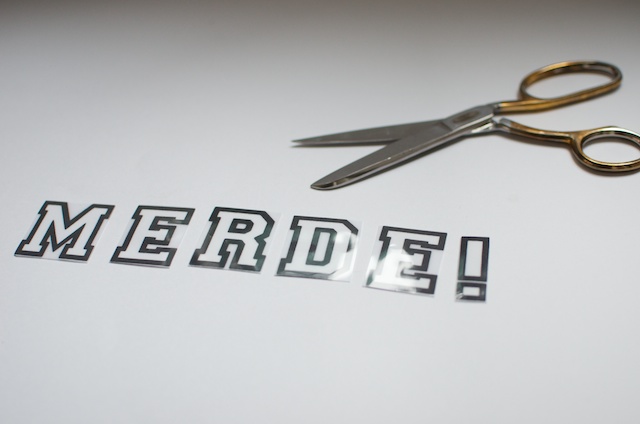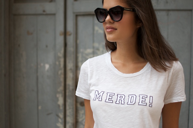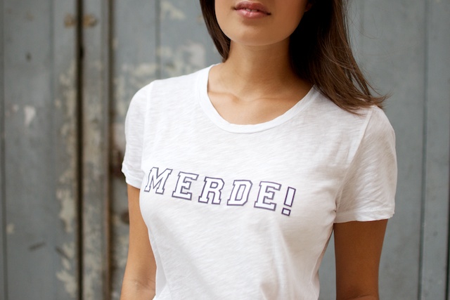 Rather than dying a slow death like most trends do after a couple of months, the graphic word tee appears to have long term staying power. And so without further ado, I bring you the handmade version. Pretty simple (I questioned even posting the steps lest you all go ‘duuurrrrr genevaaaa’) and something I made a little while ago, it’s definitely the trend of the summer. Given we have a month and a bit left of summer I thought why not? To go on my shirt I chose something fun – merde being my favourite french word (literally meeting sh*t), with hundreds of different figurative meanings depending on how it’s said. I used to live with a French guy in London and as long as he had ‘merde’ he barely needed anything else. I was also on the metro in Paris once and heard a 6 year old say it and nobody batted an eyelid – love France!