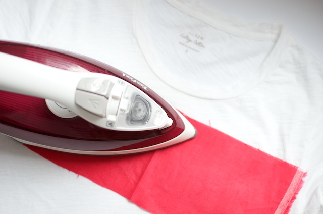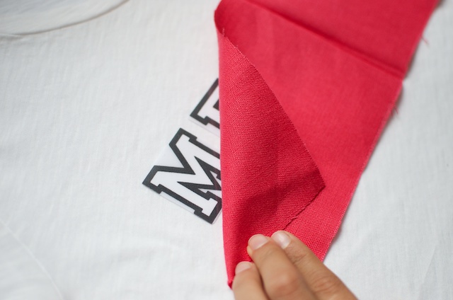 3. Put the tee with letters in place on the ironing board and cover with the cotton.