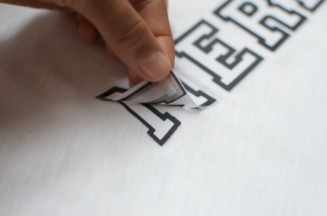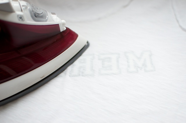 5. Once you have done that for a few minutes, turn the tee inside out and iron the other side of the letters too so the glue sets really well.