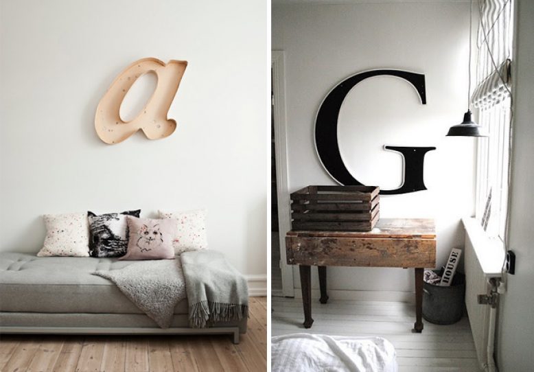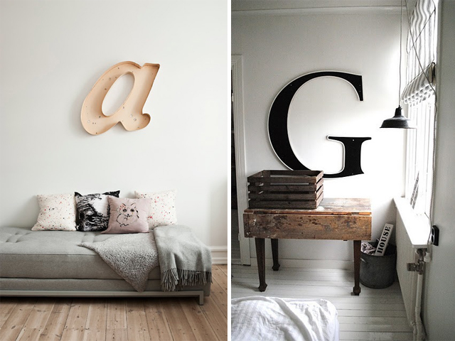 I’m always on the lookout for simple interior updates that act as art without the major investment, and am currently feeling inspired by letters in the home. Ultimately vintage style letters look the best – estate sales seem like a great place to pick up a bargain – but you could also DIY some wooden/cardboard ones from a craft store and give them a lick of paint. Are you feeling letters as art?