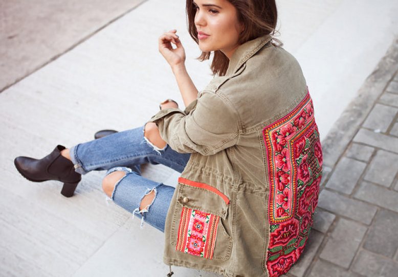 I’ve been crushing on statement embroidered jackets for some time now, but have shied away from crafting my own due to the (presumably) intense amount of work that goes into one – think of all that thread and sore fingers! Although embroidery is definitely on my list of things to master this lifetime, I was so happy when we came up with a way to make the perfect embroidered jacket, without all the time and effort of doing it manually. We simply added a gorgeous piece of fabric to an existing jacket! Cheating I know but it works! What’s even better is that we used fabric from a bag I had bought while travelling around Asia – both re-using something I was tired of and integrating memories of my travels into an everyday jacket, talk about a win win! Read on the see how.
