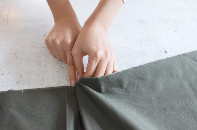 Hand sew a hook and eye to the top of your zip. Lastly, hem the bottom of the skirt by folding the edge under by 1cm and sewing along the edge.