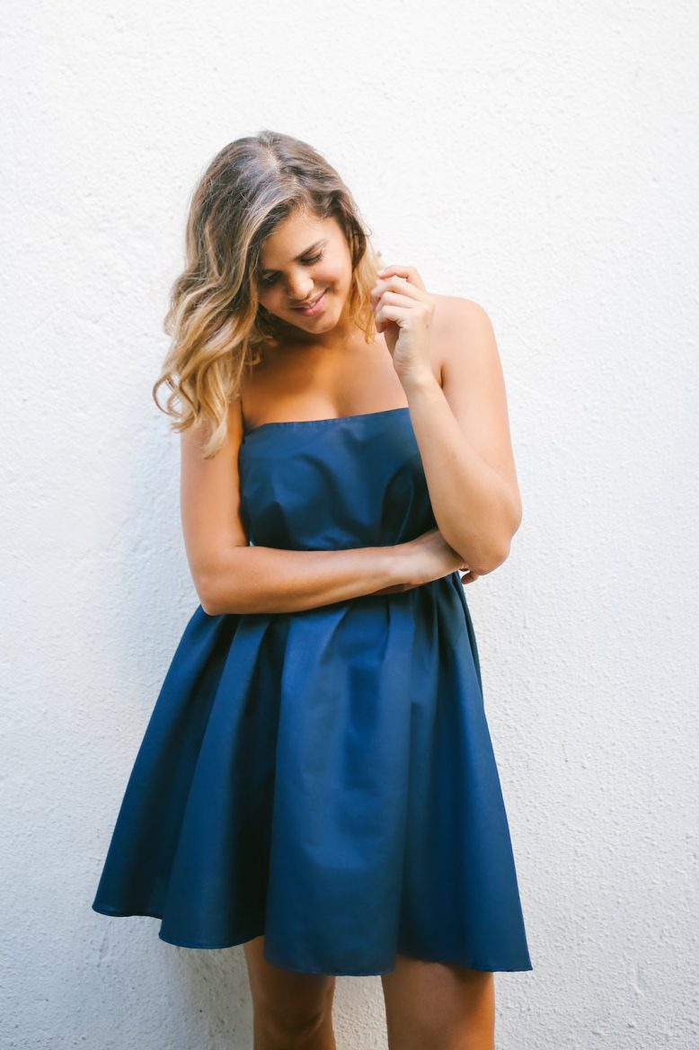For the top, take the measurement around your front and upper arms all the way round to the back, make sure the measuring tape is firm so that the top won’t slip down, but not so tight that it digs in. For the dress, you want to take your upper bust measurement, going around the body and under your armpits, again you want a firm but not super tight measurement. For the skirt, take your waist measurement i.e. the narrowest point on your torso but this time make sure you can still place three fingers under the measuring tape, this is to accommodate for your rib cage expanding when you breathe.