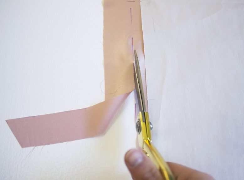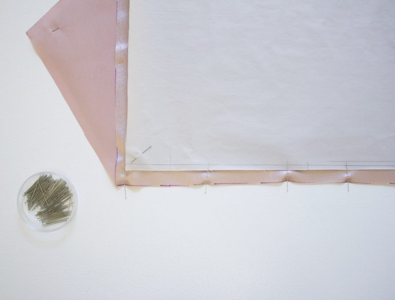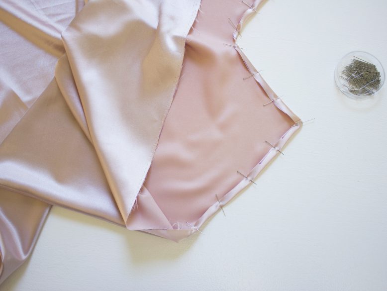 Repeat the same procedure for the back of the cami and then pin the front and back pieces together at the side seam. I found it easier to handle the fabric (which can be quite slippery) with the paper still pinned to it. Then sew together.
