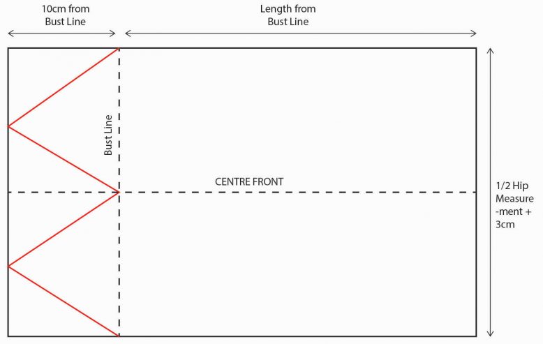 Create a paper pattern for the front of the cami using the measurements and formulas in the diagram and cut it out.