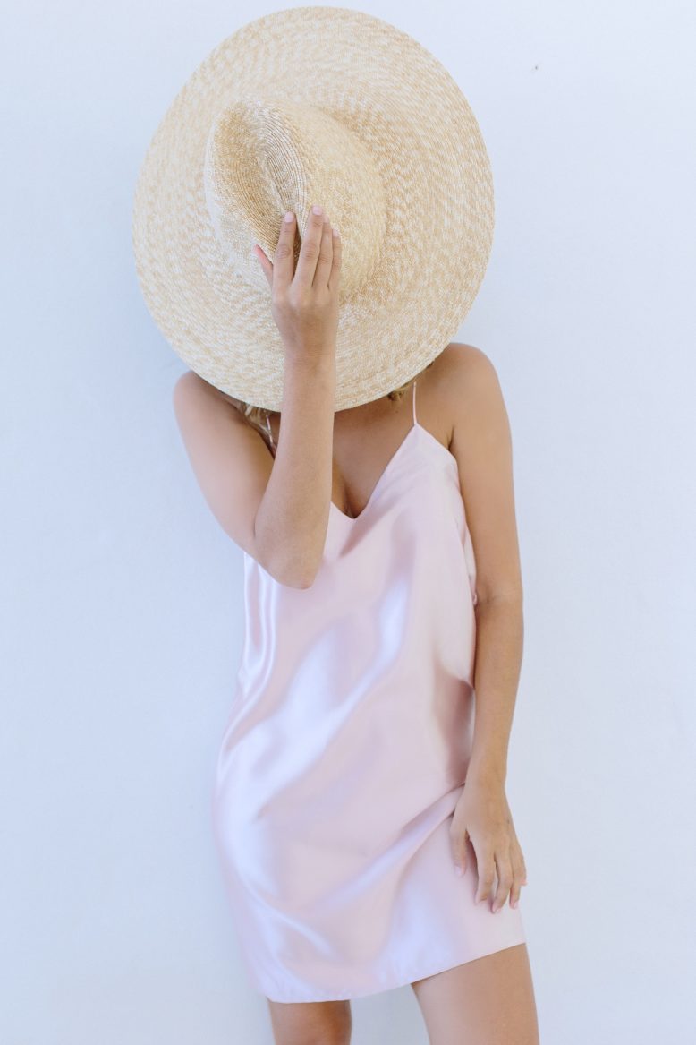 We used blush pink silk for this one, but a more subtle version would be black, and you could layer it with tights and turtle neck if it’s cold or you’re keen to leave the house.