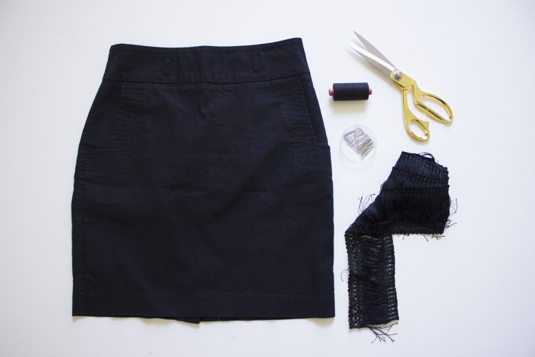 This is a very simple update project, and is great because you probably have a black skirt lying around in your closet that’s just dying for a tweak. This one was in my charity shop pile but I thought that it was high time I got creative. Something perfect for the weekend, just layer with tights if you’re still deep in the winter time. Time to make a DIY Fringe Skirt!