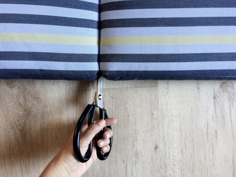 I had searched high a low for a cushion that would suit this project – something the right width and nice and sturdy so it wouldn’t flop around. I actually bought a small mattress and cut it in half only to find it buckled in the middle. Gah! Whilst pottering around on the Ikea website I found these bench seat cushions and realised that covered with a sturdy fabric they would be perfect!