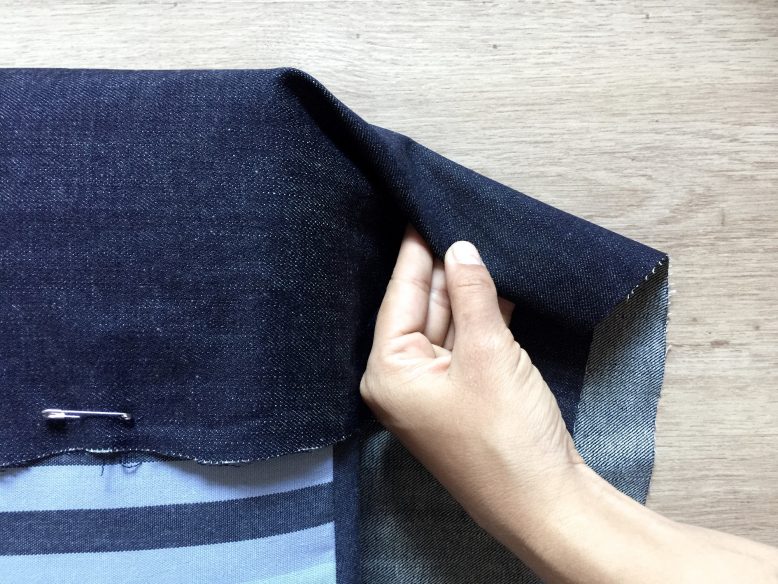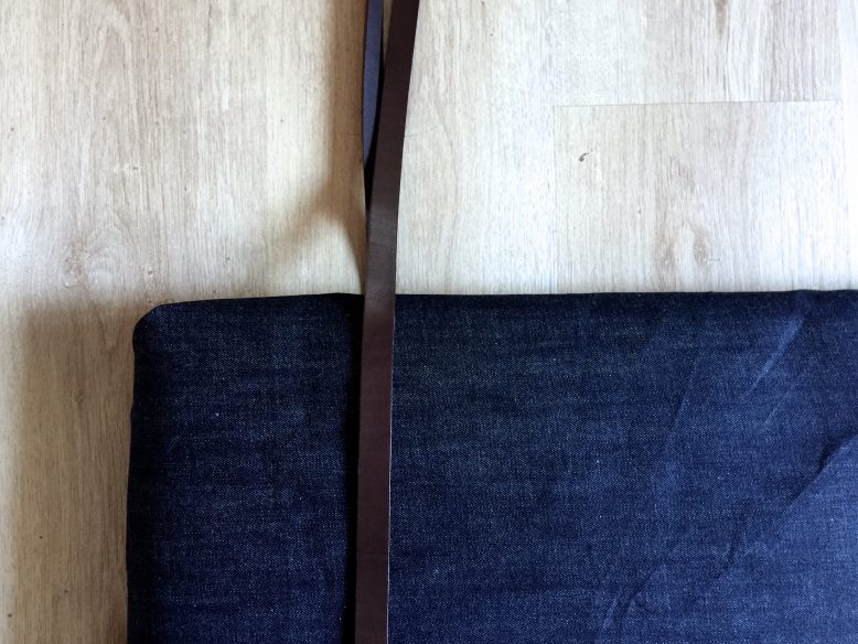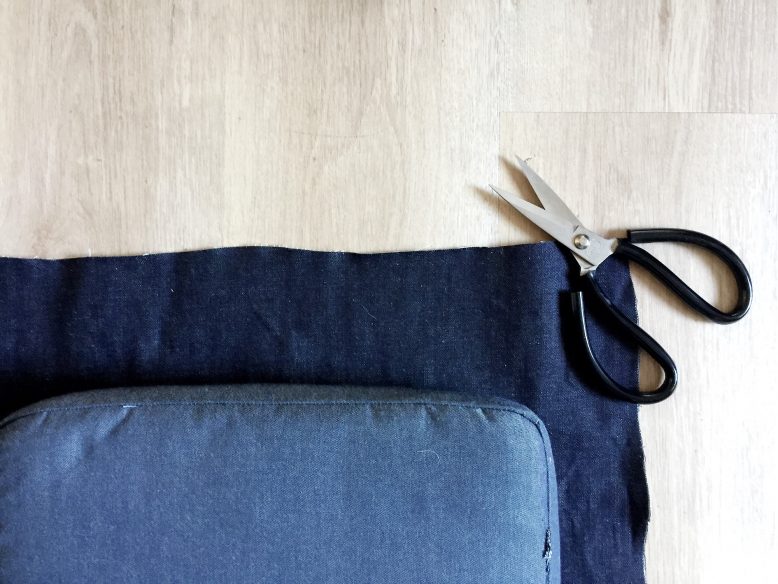 Cut your denim to fit roughly the size of your cushion, making sure you account for the fact that you want to wrap it like a present so will need overlap.