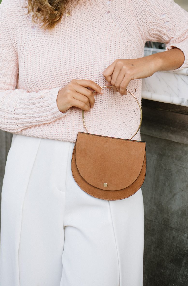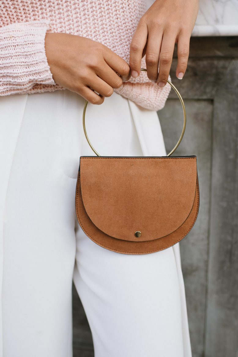 I first noticed this bag style a few seasons ago, and since then the metal ring handle has been popping up just about everywhere. I knew it was a project I wanted to add to my wardrobe! I like when applied to a dainty clutch (as opposed to a tote or bucket bag) because to be that helps emphasise the handle. Are you like me and you’ve got a little hankering to add this shape to your wardrobe? You must! And why not make it yourself?