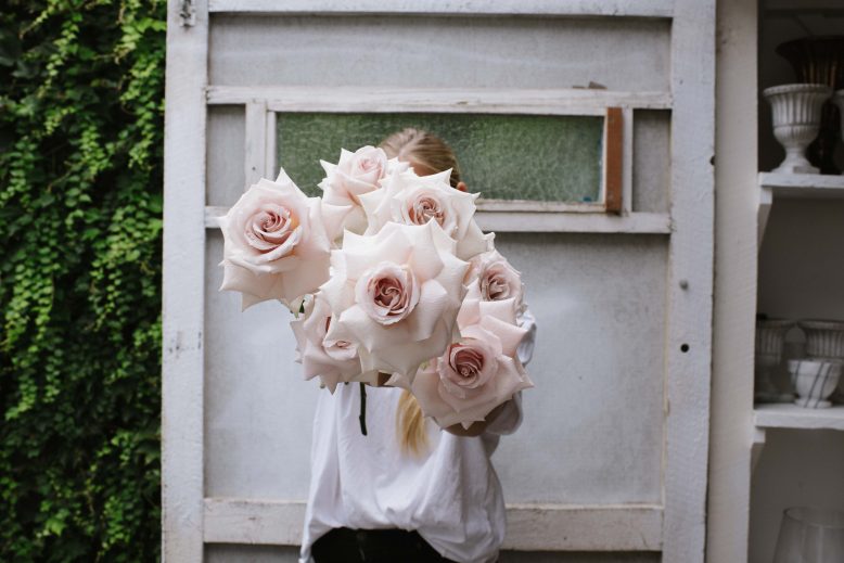 As an avid follower of Emily for a while now, I couldn’t help but notice that her arrangements are always so full and well bloomed. At first I thought she used specific varieties of roses, but whilst I was visiting her in her studio she taught me a new technique (a bit of a florists secret!) for opening /blooming roses by hand. I asked if she would mind me sharing it here and she said she didn’t, but let’s keep it between you and me ok? 🙂