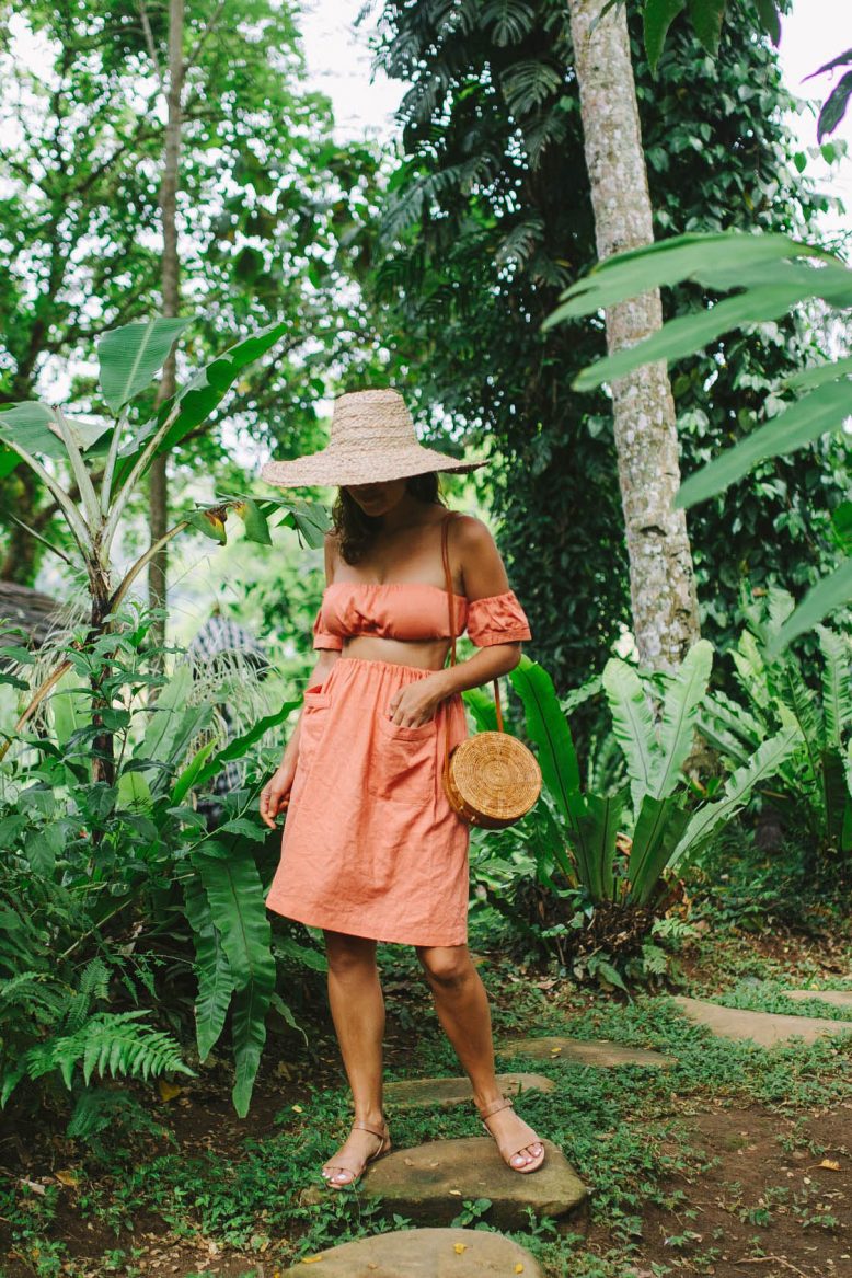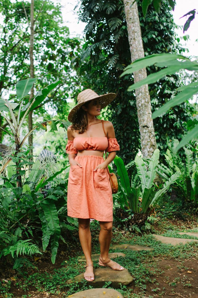There’s nothing I like more than planning a travel wardrobe filled with DIYs and pieces I’ve made myself. It’s sometimes hard to find the time in the lead up to a big trip, but nothing fills me with more joy when I can fit it in. This trip I’ve created 4 different pieces, and I’ve been loving putting them to the test in the humidity of Bali! This top and skirt set is the first one I wore and am excited to share it with you.