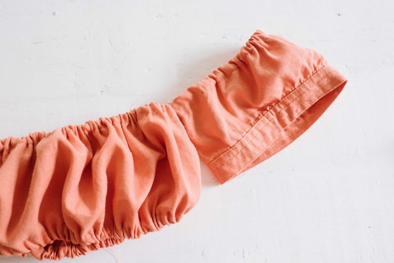 To make the top I followed this tutorial, using the sleeves from the dress as the sleeves for this new top. I added elasticated bands to the top and bottom of that tube, and then added elastic bands to the ends of the sleeves, sewing them all together by hand. Easy! I like that we could keep the finishing of the sleeve edge for a more detailed look.