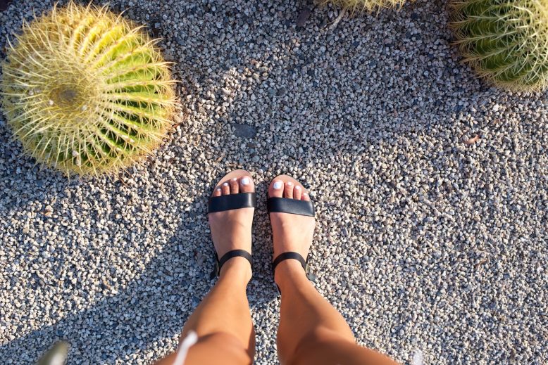 Wearing The Simple Sandal in black.