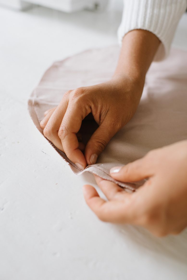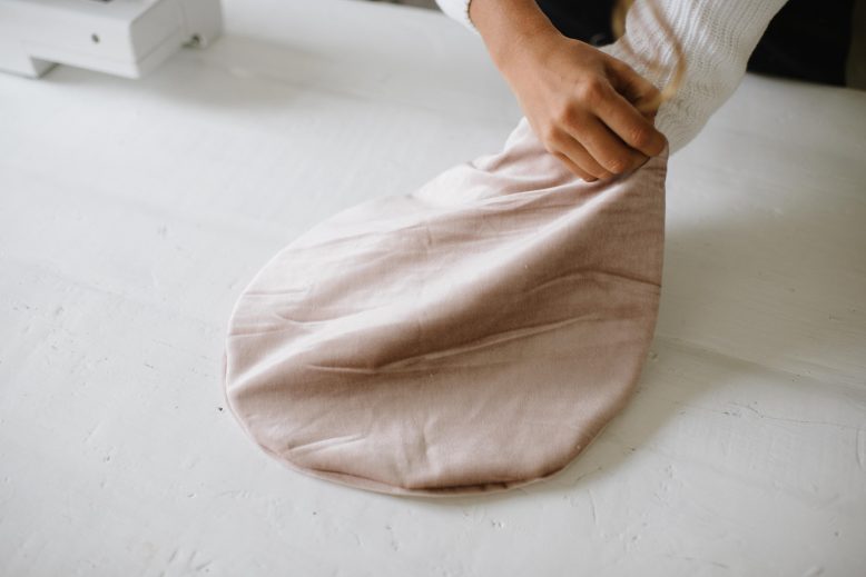 Fill your cushion with stuffing, pushing it to the edges so that it is a nice round shape. Then, sew the opening shut by hand.