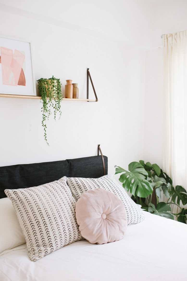 I want to make this cushion in a rust and a mustard velvet too. Thoughts? In case you’re interested, there are some other DIYs shown in this post including the DIY Leather Hanging Shelves, DIY Cushion Headboard, DIY Wood Slice Table and DIY Throw Cushions.