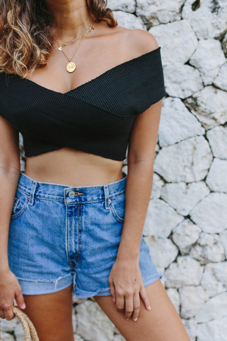 To wear the top, I wore a strapless bra underneath and paired it with my (beloved) DIY denim shorts to go to the beach and hang around by our pool in Bali. For a more elegant look, pair it with some high waisted palazzo trousers so there’s less skin showing, or a high waisted pleated skirt. I’ll be sharing with you another idea for how to wear it in a few days. And by the way, make sure to only lightly hand wash the top!