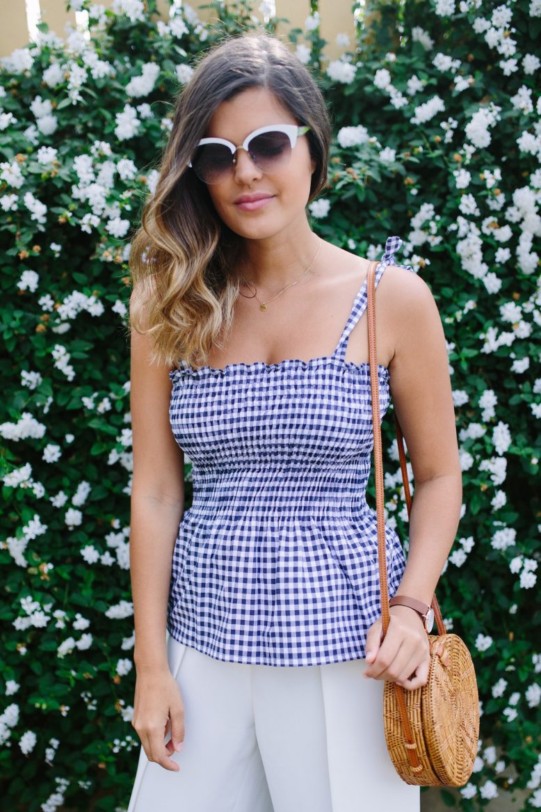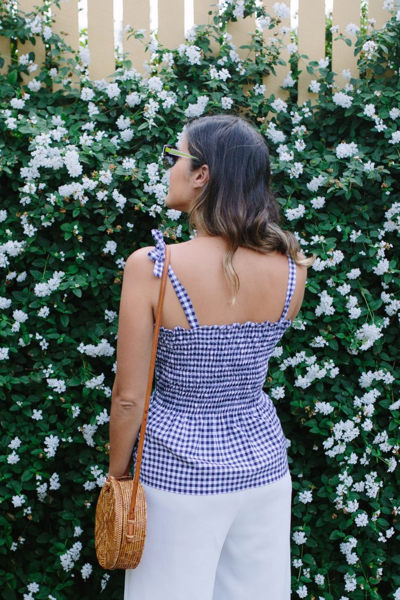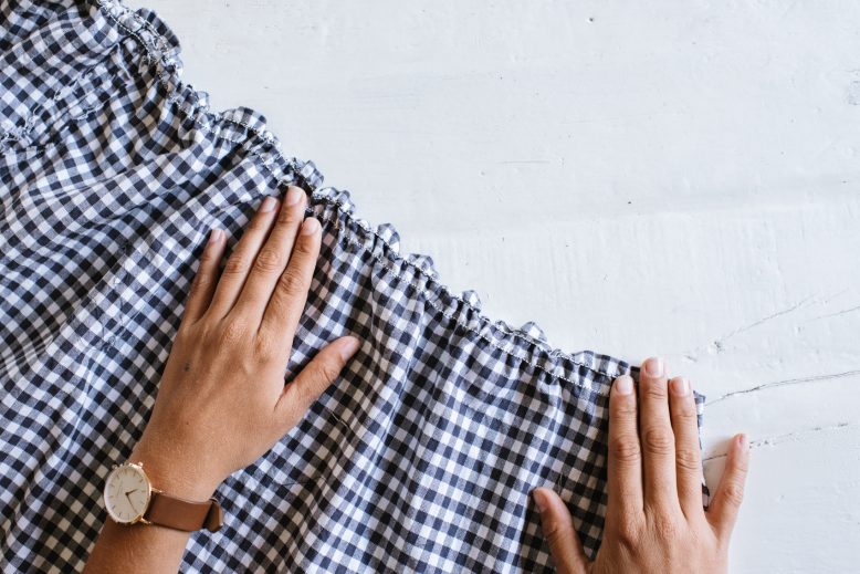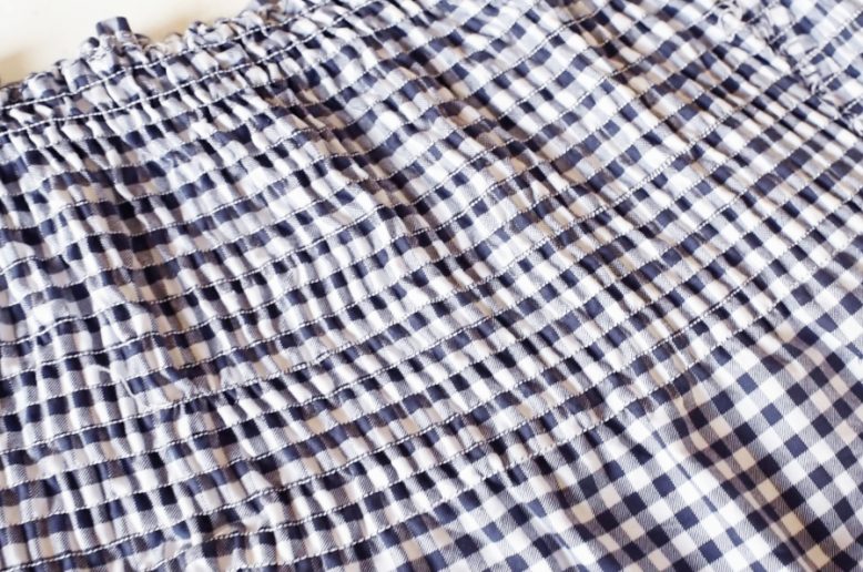 In case you’re wondering, shirring is a technique where you use elasticated thread as the back thread to gather the fabric, which gives it shape and structure and allows it to expand but then pulls the fabric back together. It’s also referred to as smocking, but this is traditionally done by hand. Naturally I had to use gingham for this top, it really is the fabric of the season and even better, the lines on it make it really easy to complete this project. Scroll down for the video and tutorial. Let’s do it!