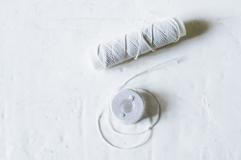The first step is to wind your bobbin with the elastic thread. I used my sewing machine to thread the bobbin and it worked well for me. However, if this doesn't work for you, you can wind it up by hand, making sure not to create tension on the thread in the process. It's a matter of testing your machine to see what works for you. Once you have done that, load the bobbin into the machine, and the top thread with normal thread.