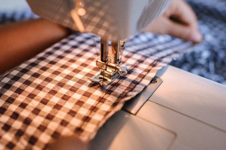 Now, time to start sewing! Using normal tension and the longest stitch length possible, sew straight lines. Our fabric had lines already but if yours doesn't we suggest marking them with chalk. We left about 2.5 cm (1 inch) between each line. Make sure that you sew the lines flat and not gathered, otherwise this technique won't work.