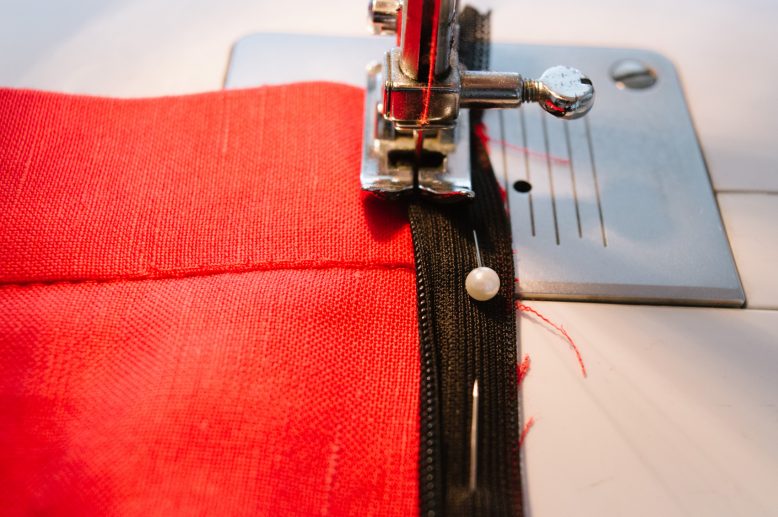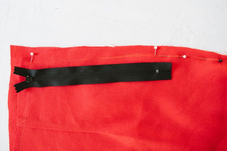 We set my zipper on the side seam, so we left an opening the same length as the zipper on the side seam. Setting the zipper down the side seam is a personal choice, you could always set it down the front or back.
