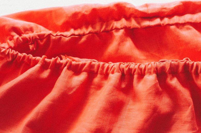 The final step is to attach the skirt to the bodice. Before you do this, create an elasticated gathered skirt using the above technique, then flight right side out and sew to the bodice.