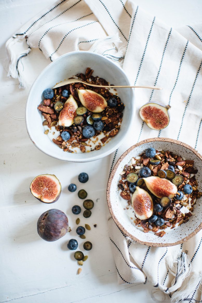 Half a cup of fibre When most people think of fibre they think of it being something we eat when we’re older to keep ourselves regular. And while yes, it is good for that, in reality fibre is so (so!) much more… In fact it’s the fuel your gut needs to feed all that good bacteria. So eating fibre is key to feeling good, and I like to get as much as I can. Granola is the perfect place to hide a bit of your daily fibre, by adding psyllium husk or chia seeds.