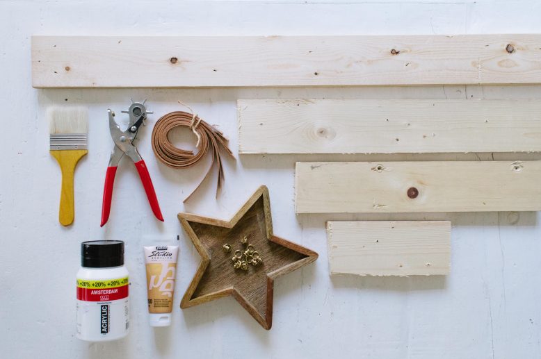 Begin by figuring out the placement of the wooden star. This will be your starting point for measuring the placements of the wooden planks below it.