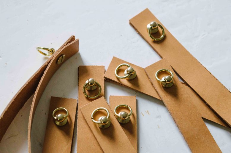 Lastly,fold the straps in half and install the ring rivets.