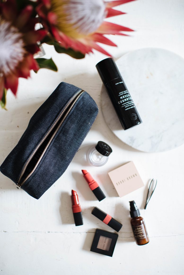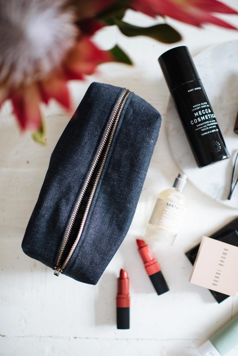 Happy Monday guys! Although I admit to liking weekends more than workdays (who doesn’t?), for me Mondays aren’t all bad. That’s because Monday can be just the clean slate I need to get things done, and often gives me the encouragement I need to get organized. With my weekly list but also with those personal things at home that have got out of hand – like the overflowing bikini draw that needs sorting or the beauty cabinet that needs sifting. Weirdly I find myself tackling these things on a Monday night! Last week it was the handbag clean out, complete with lip glosses, eyeliners and all those other beauty bits and bobs that like to cluster at the bottom. A ‘what’s in my handbag’ wasn’t such a pretty sight in my case! While I was doing the clean out I realized that a lightweight make up bag was just what I needed in my handbag to put keep all these daily items organised, after I gave them a good wipe down that is! Read on to see how to make one for yourself.