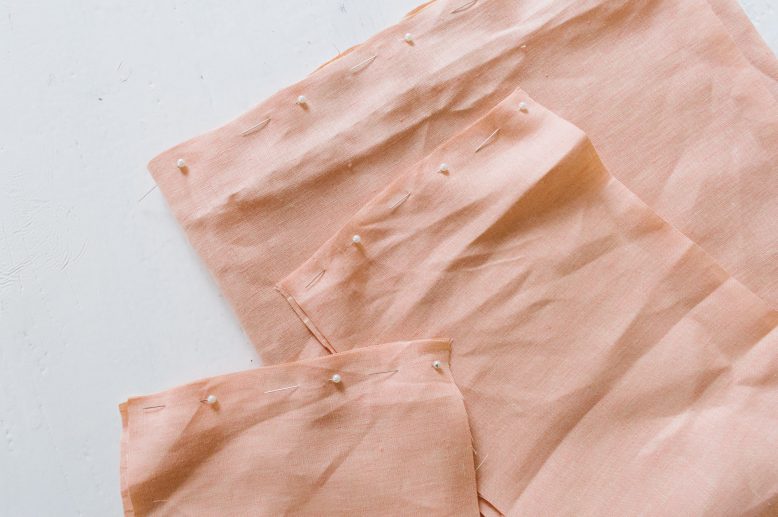 Pin down one side seam of the dress, and the seams between the ruffle pieces, then sew.