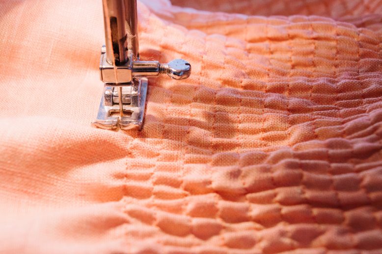Mark shirring guidelines onto the front side of your fabric if you need to. We spaced our shirring lines half an inch apart.