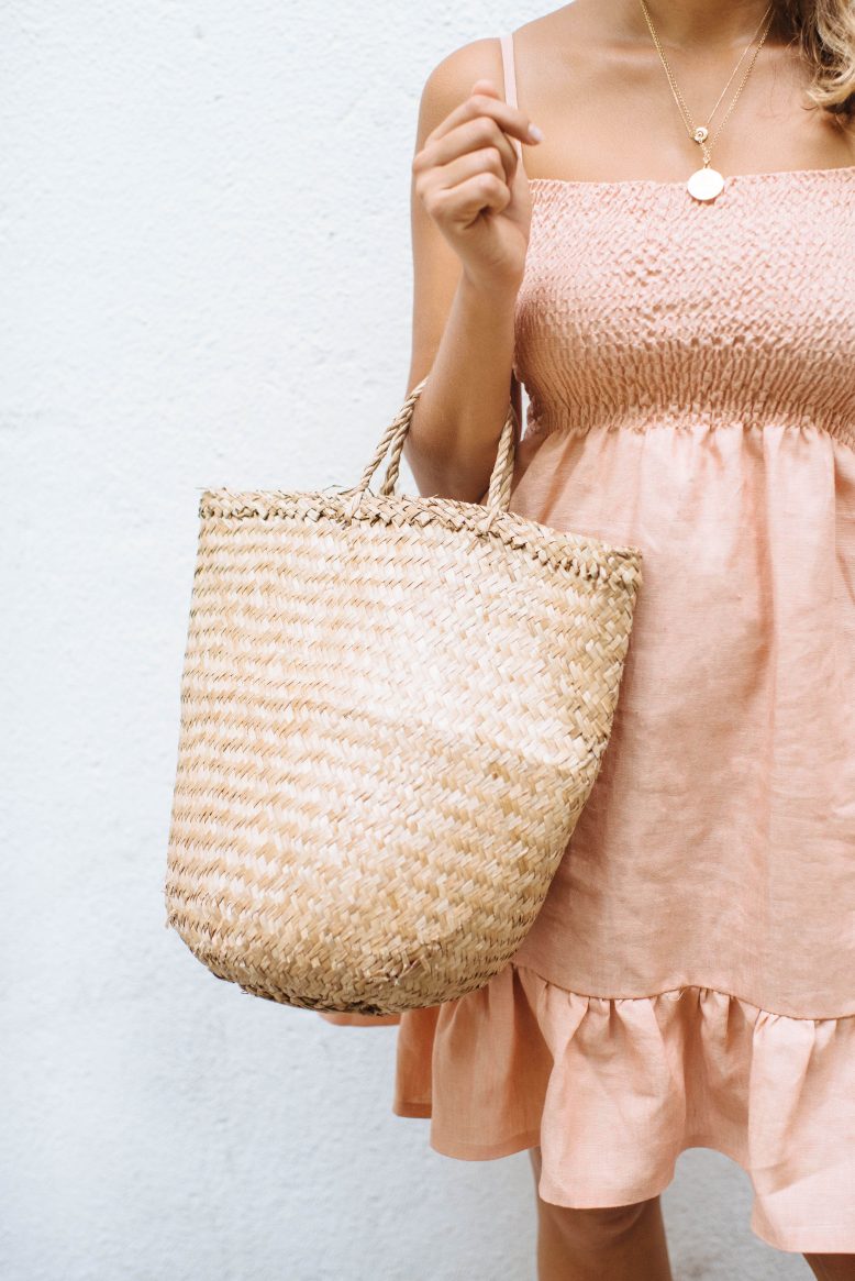 The silly season is in full swing and chances are you’ve got a few partays happening, and so we thought it would be fun to share a simple holiday dress idea. I’m such a fan of a skater style, but have always struggled with the complicated elements of a fitted bustier (maybe one day!). This shirred style has the elegance of a fitted dress without you having to work out all those circular angles… Yay! We’ve used a peach linen for this dress, but if you used black or even a luxe silk fabric you would up the holiday party ante. Enjoy!