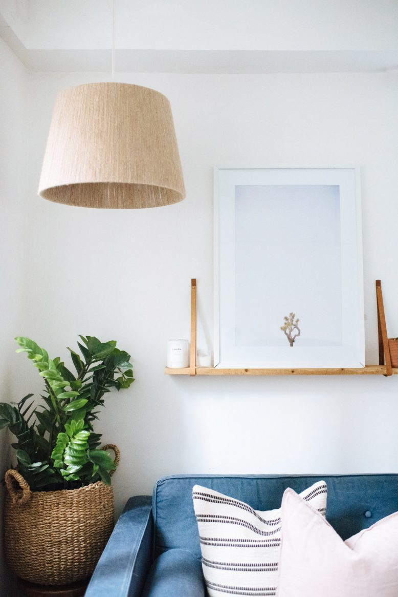 Shelfies are the perfect way to create a space that feels you, and there are lots of options for integrating shelves into rental spaces. Floating shelves are so lovely, but you may or may not be allowed to mess with the walls as per your lease. If you are allowed to add the odd nail to the wall (ask first!), hanging leather shelves are the least destructive compared to floating shelves, only requiring two small nails. Otherwise, use shelves that balance on the floor like simple rectangular shelves or some shelves made from a ladder.