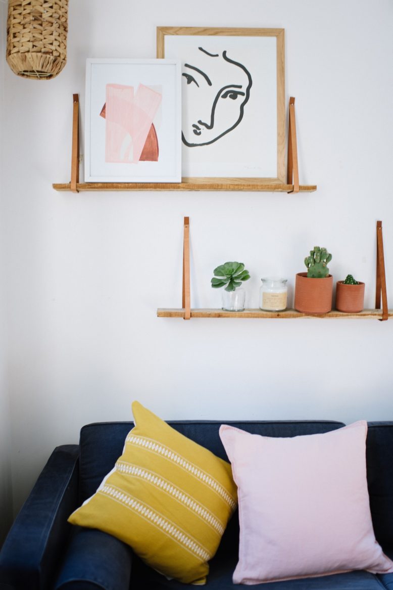 - And if you’re allowed a few nails, hanging leather shelves are a low intervention option.