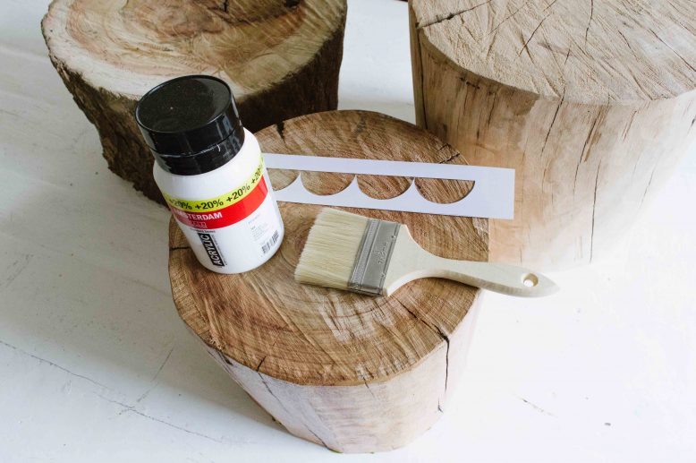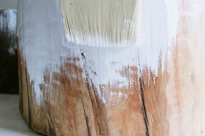 For one of our stools we painted it completely white, using normal acrylic paint.Two layers were enough to fully cover the stool.