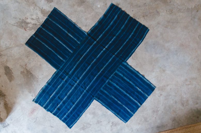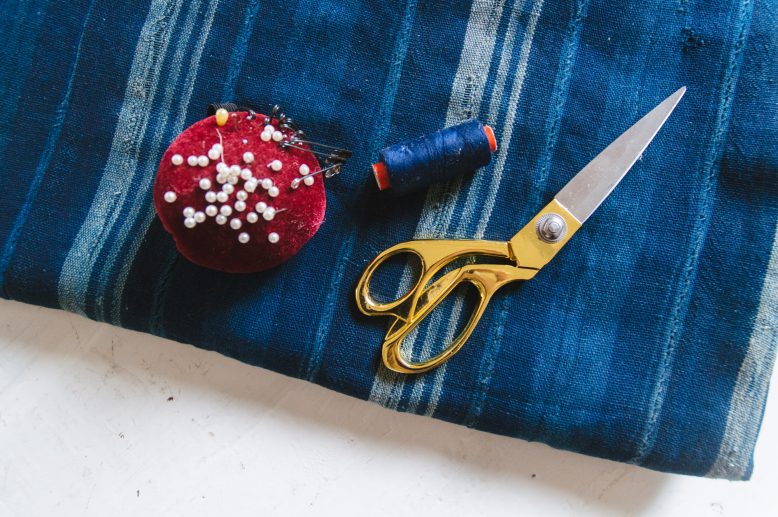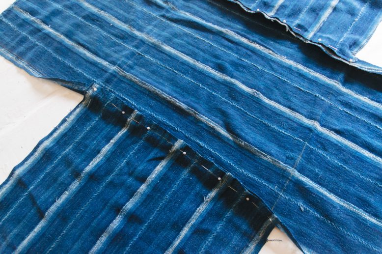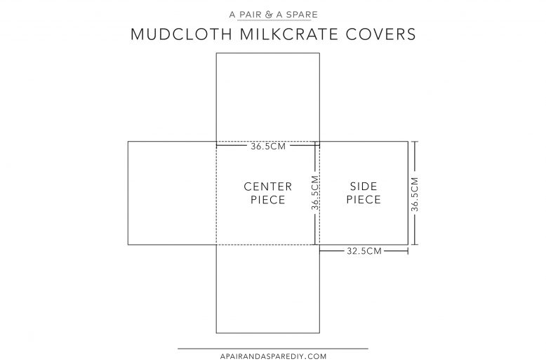 We used mudcloth with the dimensions 114 cm (45′)’ x 153 cm (60”) for this project, and made one cover with cloth to spare. A standard milk crate size is 36.2 cm x 36.2 cm x 32.3 cm (height), so this is the dimensions we used to draft the pattern, rounding the measurements up to 36.5 cm x 36.5 cm x 32.5cm for a little ease allowance.
