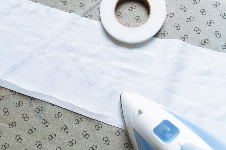 Cut two strips of fabric for the spaghetti straps (or use some ribbon). Fold the seam allowances towards the centre, then fold the entire strip in half before sewing or fusing it closed. Attach the straps to your dress and voila!