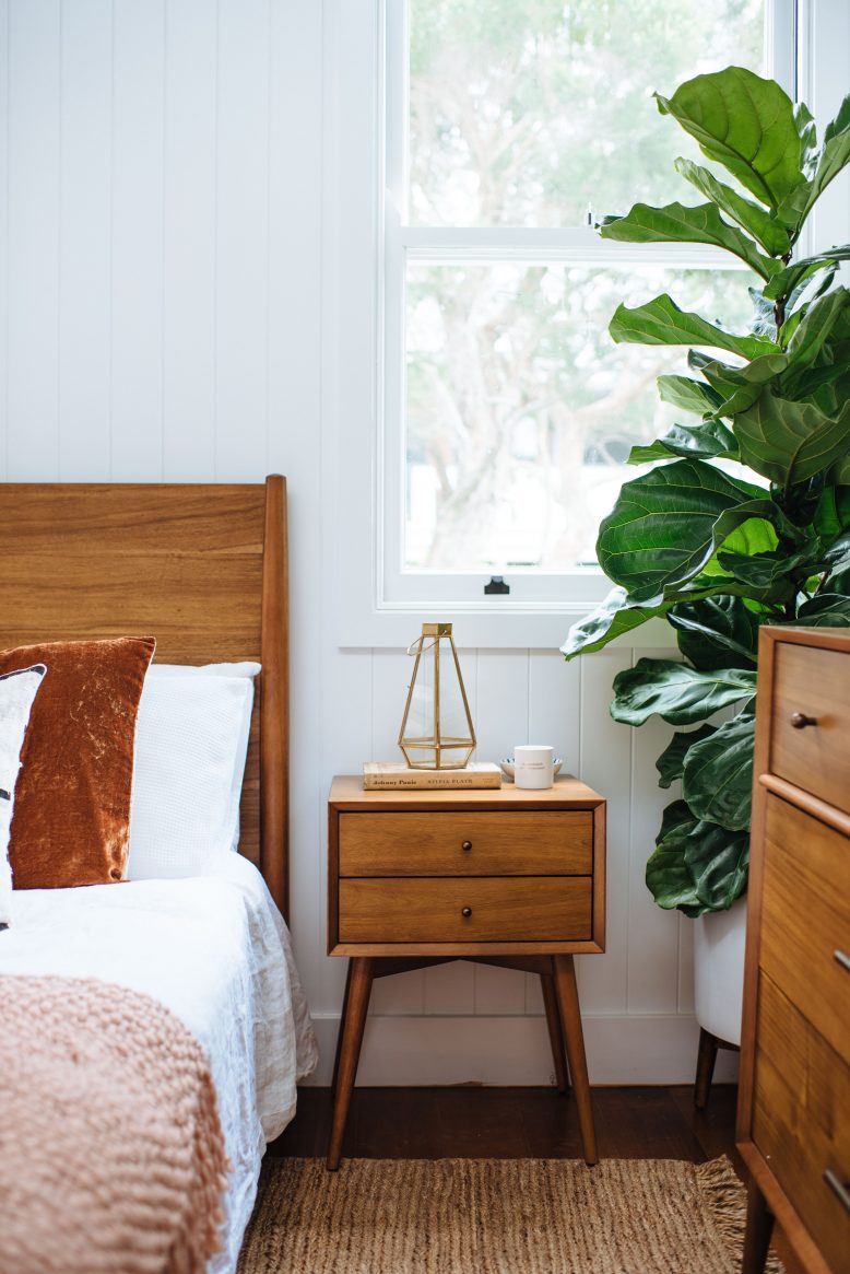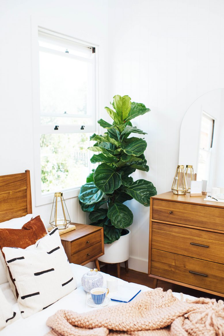 Plants It’s not a bedroom without some soothing greenery, but instead of going OTT on the number of plants, I went for size in a single one. This fiddle leaf fig is dreamy don’t you think? Particularly when paired with this mid-century planter.