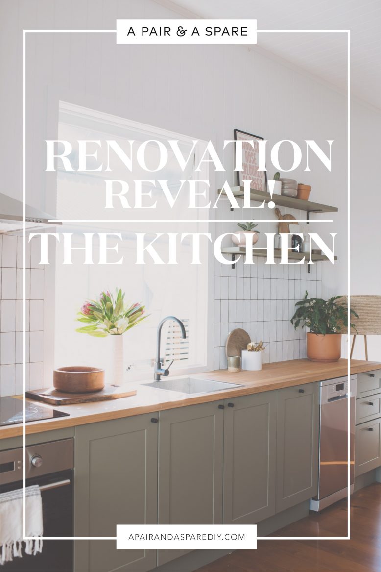 Bespoke Style Kitchen Cabinetry The aesthetics of a kitchen really come down to the cabinetry you use. When I was putting together our mood boards, I really wanted a bevelled cabinet profile, but they were really hard to find in a great colour AND at an affordable price. It was tricky! Luckily I discovered that Kaboodle had a very affordable option (called ‘alpine’), which we hand painted ourselves in a gorgeous shade of green – this one is ‘Bay Berry’ from Haymes Paint. To make the kitchen feel even more bespoke, we used black wooden doorknobs from Kethy – in a bowl shape for the big pantry cabinets and in a small cylindrical knob shape for the smaller cupboards. I’ll be sharing the full how-to for this soon!